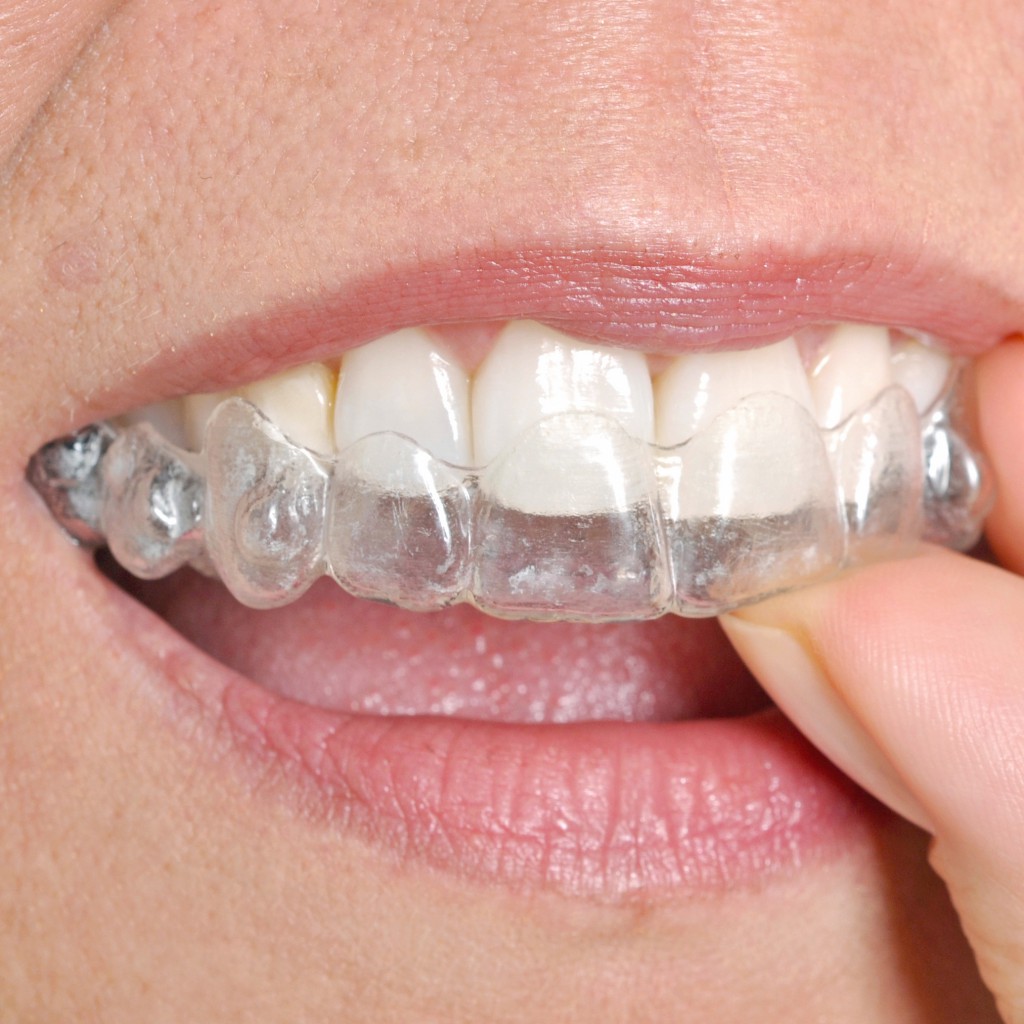 Mit der Invisalign-Schiene lassen sich Zahnfehlstellungen effektiv beheben. Der Begriff setzt sich zusammen aus den englischen Worten „invisible“ (unsichtbar) und „aligner“ (Schiene).