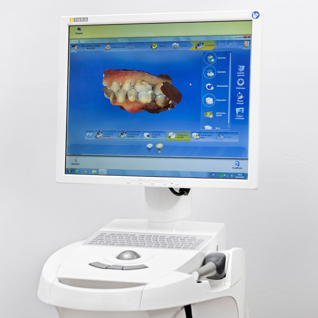 Firma Sirona sowie deren Materialpartner. Diese werden direkt vor Ort durch das CEREC-System auf Basis der 3D-Daten zu Ihrem individuellen Zahnersatz gefräst.